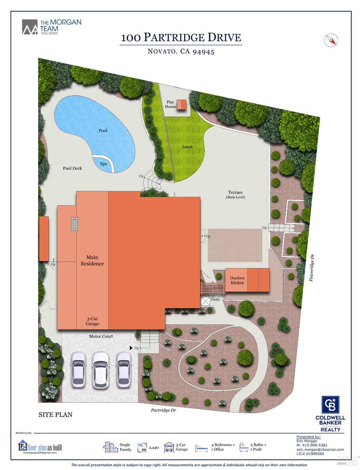 Nestled in Novato's coveted Partridge Knolls neighborhood and just moments from Mt. Burdell, Marin County's largest nature preserve, 100 Partridge Drive offers 4 bedrooms, 2.5 bathrooms, and approximately 2,300+ sqft of thoughtfully designed living space that seamlessly blends style, comfort, and indoor-outdoor living. Surrounded by open space and scenic trails, this home captures the relaxed Marin lifestyle buyers seek. Inside, soaring ceilings, abundant natural light, and beautiful hardwood floors create a bright and welcoming atmosphere. The spacious living and dining room combination is ideal for entertaining, while the kitchen features generous cabinetry and a charming breakfast area overlooking the backyard. The inviting family room with a wet bar provides a fantastic space for gatherings, movie nights, or casual entertaining. Upstairs, the private primary suite offers a true retreat, thoughtfully designed for both comfort and functionality. The recently updated, designer-inspired bathroom showcases dual sinks, dual showerheads, and a stylish Italian porcelain tiled walk-in shower, complemented by a spacious walk-in closet. A dedicated office area within the suite provides a quiet and convenient space for working from home or unwinding in privacy. The backyard is designed for memorable entertaining, with multiple levels of outdoor living, a gated sparkling pool, a lawn area, expansive hardscape, and a covered outdoor kitchen with a built-in BBQ, ideal for hosting while enjoying views of the surrounding open space. A three-car garage and close proximity to hiking, shopping, and everyday conveniences complete this exceptional Novato offering.