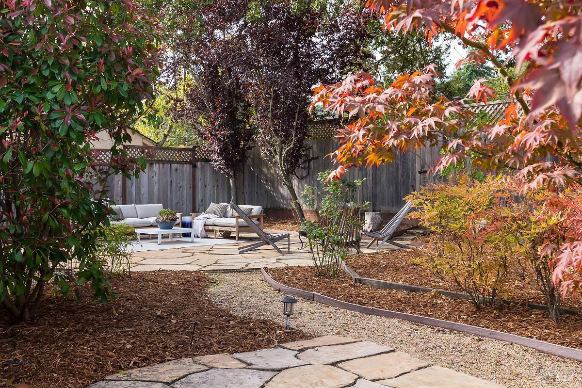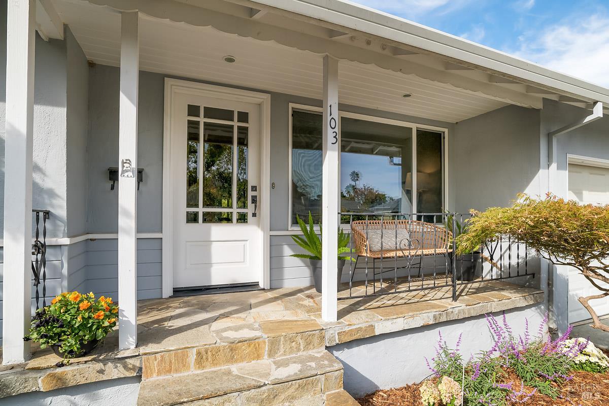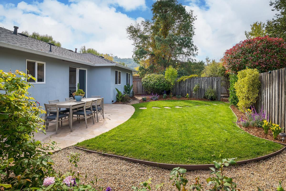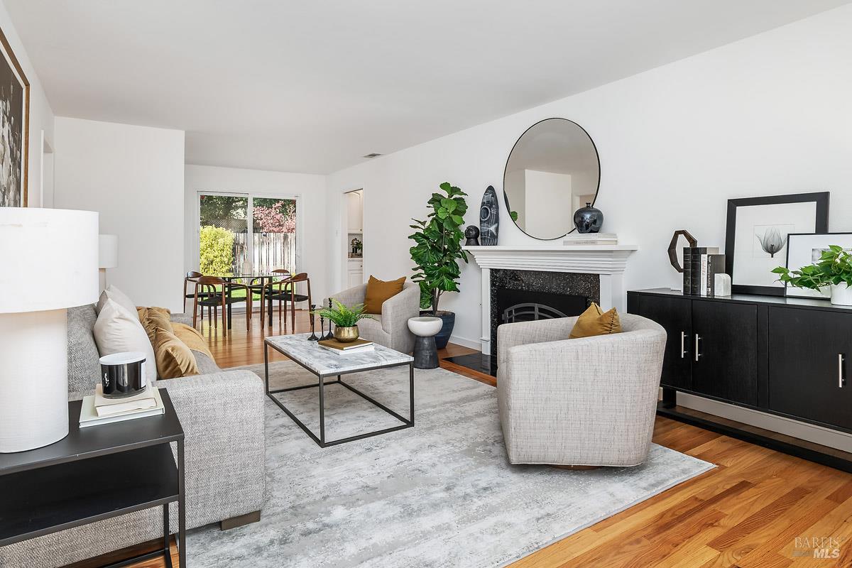 Tucked away in the welcoming San Rafael Meadows neighborhood, this charming single-level home perfectly blends comfort, character, and convenience. Featuring 3 bedrooms and 1 bathroom across 1,073 square feet, it offers a bright and open layout designed for easy living. The spacious living and dining combo is filled with natural light, highlighted by warm wood floors and a cozy gas fireplace that creates an inviting atmosphere. The kitchen offers sleek quartz countertops, ample cabinet storage, and a sunny breakfast area, an ideal spot to enjoy your morning coffee. Each bedroom is a comfortable size with plush new carpet and plenty of closet space, while the bathroom features a clean shower-over-tub combo. Outside, enjoy a freshly landscaped backyard with a lush new lawn, a beautiful flagstone patio, and multiple areas for entertaining, play, or simply relaxing. The inviting front porch and two-car garage add both charm and practicality. With easy access to transportation services, great restaurants, and the lively local farmers market, this home offers the perfect blend of warmth, comfort, and convenient San Rafael living.