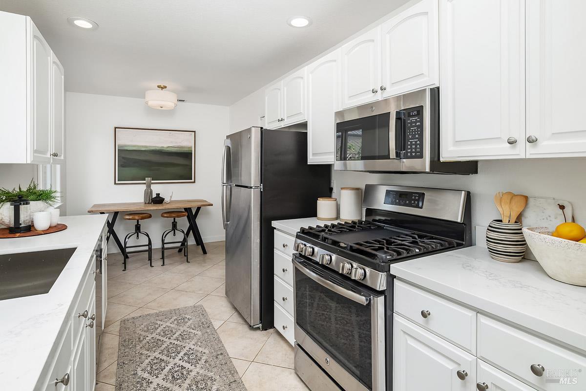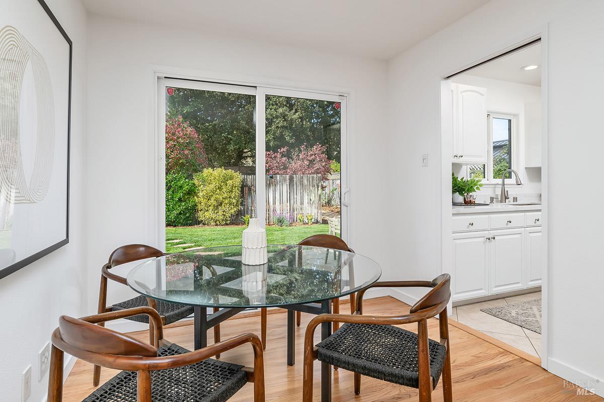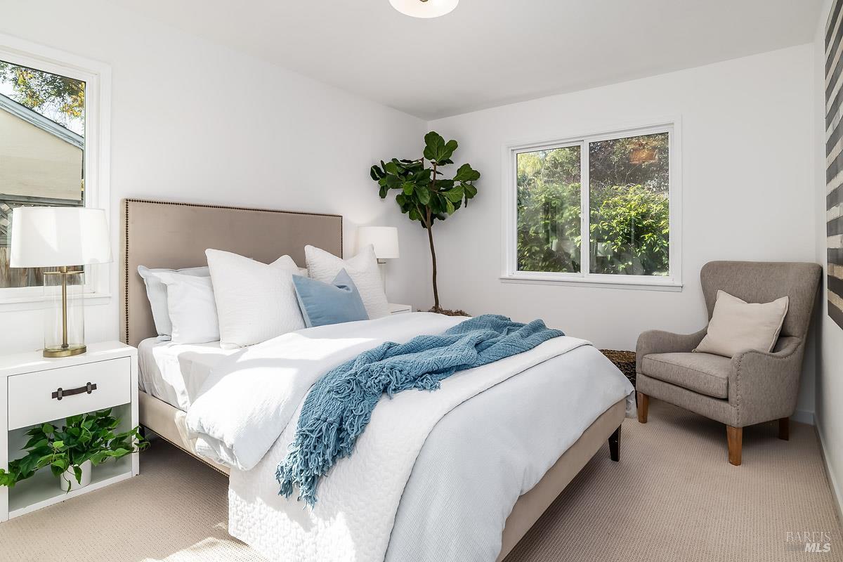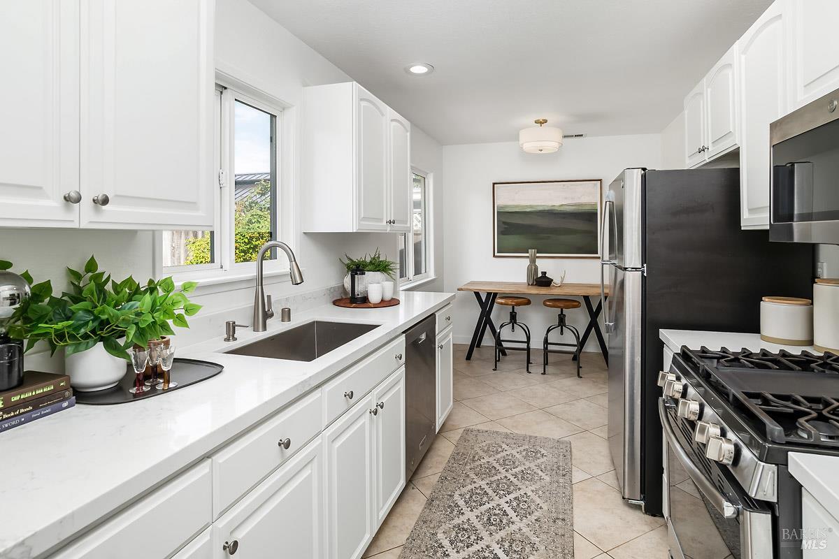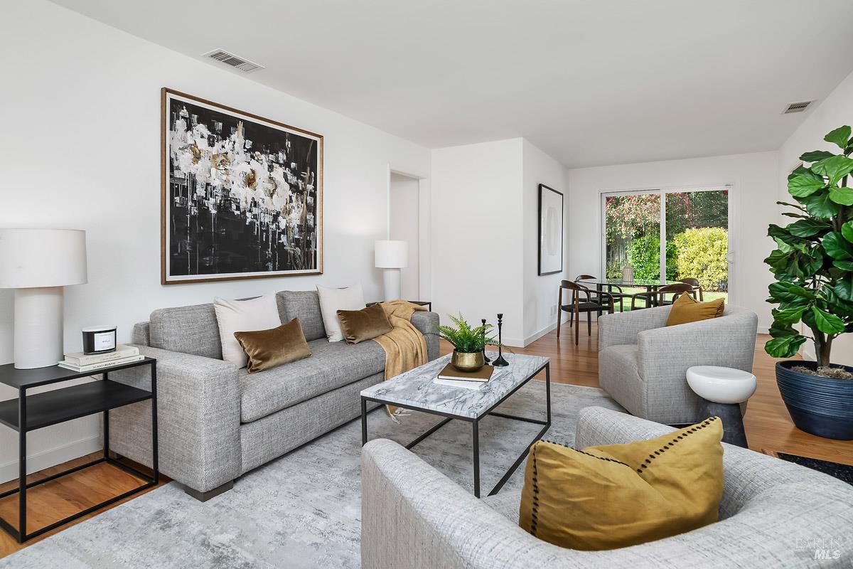 Tucked away in the welcoming San Rafael Meadows neighborhood, this charming single-level home perfectly blends comfort, character, and convenience. Featuring 3 bedrooms and 1 bathroom across 1,073 square feet, it offers a bright and open layout designed for easy living. The spacious living and dining combo is filled with natural light, highlighted by warm wood floors and a cozy gas fireplace that creates an inviting atmosphere. The kitchen offers sleek quartz countertops, ample cabinet storage, and a sunny breakfast area, an ideal spot to enjoy your morning coffee. Each bedroom is a comfortable size with plush new carpet and plenty of closet space, while the bathroom features a clean shower-over-tub combo. Outside, enjoy a freshly landscaped backyard with a lush new lawn, a beautiful flagstone patio, and multiple areas for entertaining, play, or simply relaxing. The inviting front porch and two-car garage add both charm and practicality. With easy access to transportation services, great restaurants, and the lively local farmers market, this home offers the perfect blend of warmth, comfort, and convenient San Rafael living.