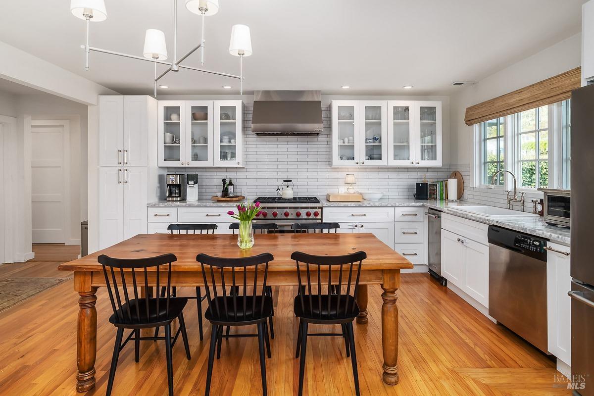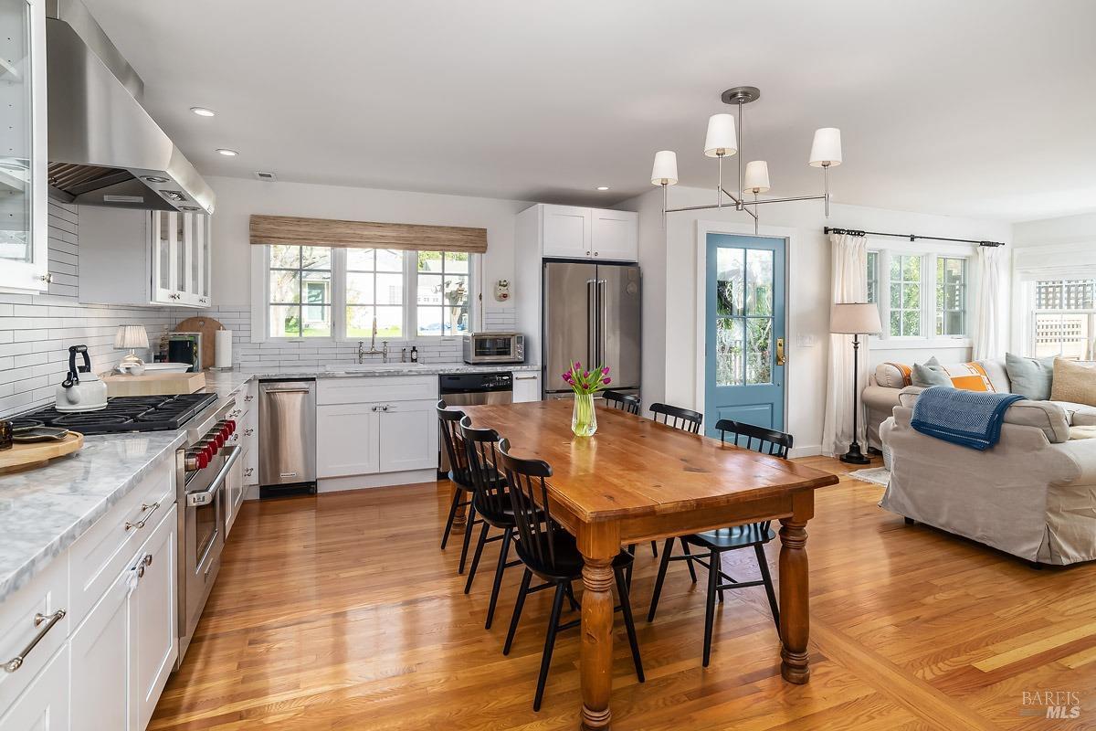 Nestled in the coveted Sun Valley neighborhood, this 3-bedroom, 2-bathroom contemporary bungalow is a true treasure that effortlessly blends modern sophistication with classic charm. The open floor plan brings a living room and kitchen that features a Wolf range, brand-new stainless steel appliances, Carrara marble countertops, a Heath Ceramics tile backsplash, and premium fixtures from the UK. The home boasts hardwood floors throughout, a convenient hallway laundry area, three spacious bedrooms, and two beautifully appointed bathrooms. The primary bedroom offers direct access to a sun-drenched backyard with an entertaining deck. Beyond the deck lies a spacious area ready for your personal touch, whether it's a garden, play space, or tranquil retreat. The front yard is meticulously landscaped with a lush lawn and raised planter beds for farm-to-table living. A covered carport with ample space and EV charging provides modern convenience. Ideally located, this home is just a short distance from the newly restored Sun Valley Park, Andy's Market, and the award-winning Sun Valley Elementary School. Combining contemporary design with an unbeatable location, this home offers a truly exceptional lifestyle. Don't miss your chance to make this jewelry box home your own!
