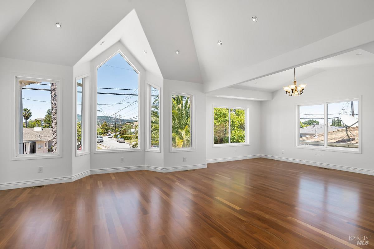 Welcome to 310 Adrian Way, a spacious 4BD/3.5BA home with 2,777 sq ft of comfortable living and views of the rolling San Rafael Hills. Soaring cathedral ceilings and Brazilian hardwood floors flow throughout the main living areas, including a grand living room with fireplace insert, a formal dining room, and a large sitting room perfect for relaxing or entertaining. The family room, also with a fireplace insert, opens to the backyard and connects to a well-appointed kitchen with granite countertops and ample storage. The expansive primary suite features multiple sliders to the deck, a fireplace insert, a vaulted walk-in closet, and a spa-inspired bath with a soaking tub, a walk-in shower, dual sinks, and marble counters. Three additional generously sized bedrooms, one of which includes an en-suite bath, and all have suitable closet space. Set on a large lot, the backyard is a true blank canvasideal for creating your dream garden or entertaining space. The oversized garage offers potential 4-car tandem parking (buyer to verify), and the under-house area provides standing-height, non-habitable storage. Move-in ready with room to make it your own. This one of a kind home is close to China Camp, the farmers market, and an easy commute to the Hwy 101.